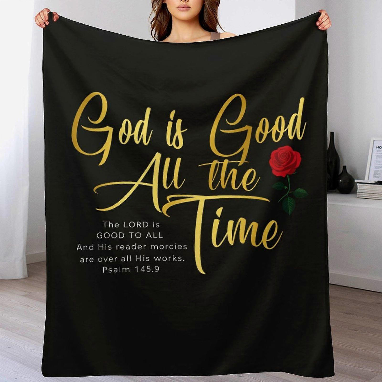 “God Is Good All the Time” Christian Faith Quote Rose Graphic Fleece Blanket, Elegant Script Typography Soft Cozy Throw for Bedroom Sofa Living Room H