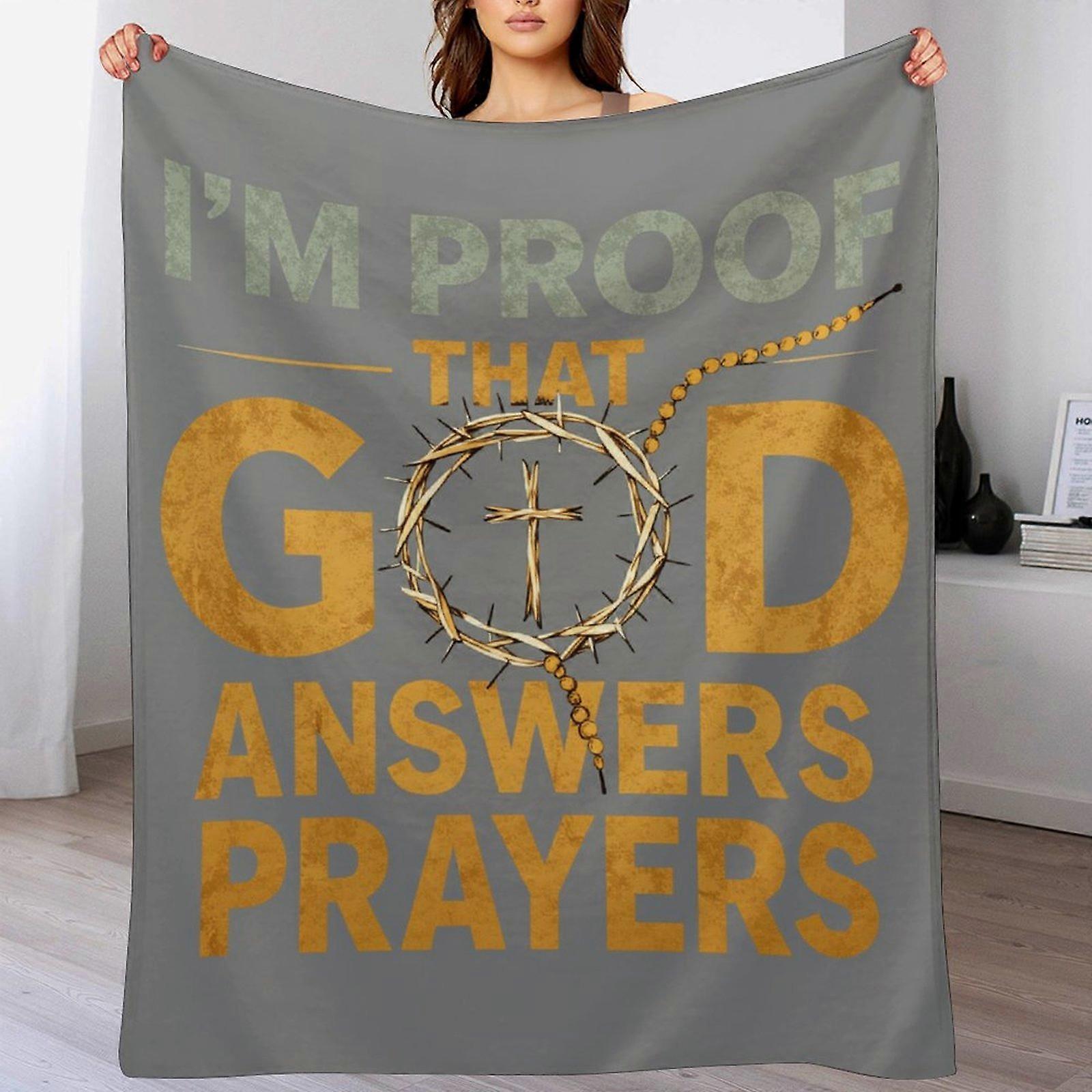 “I’m Proof That God Answers Prayers” Cross & Crown of Thorns Graphic Fleece Blanket, Inspirational Christian Faith Quote Soft Cozy Throw for Bedroom S
