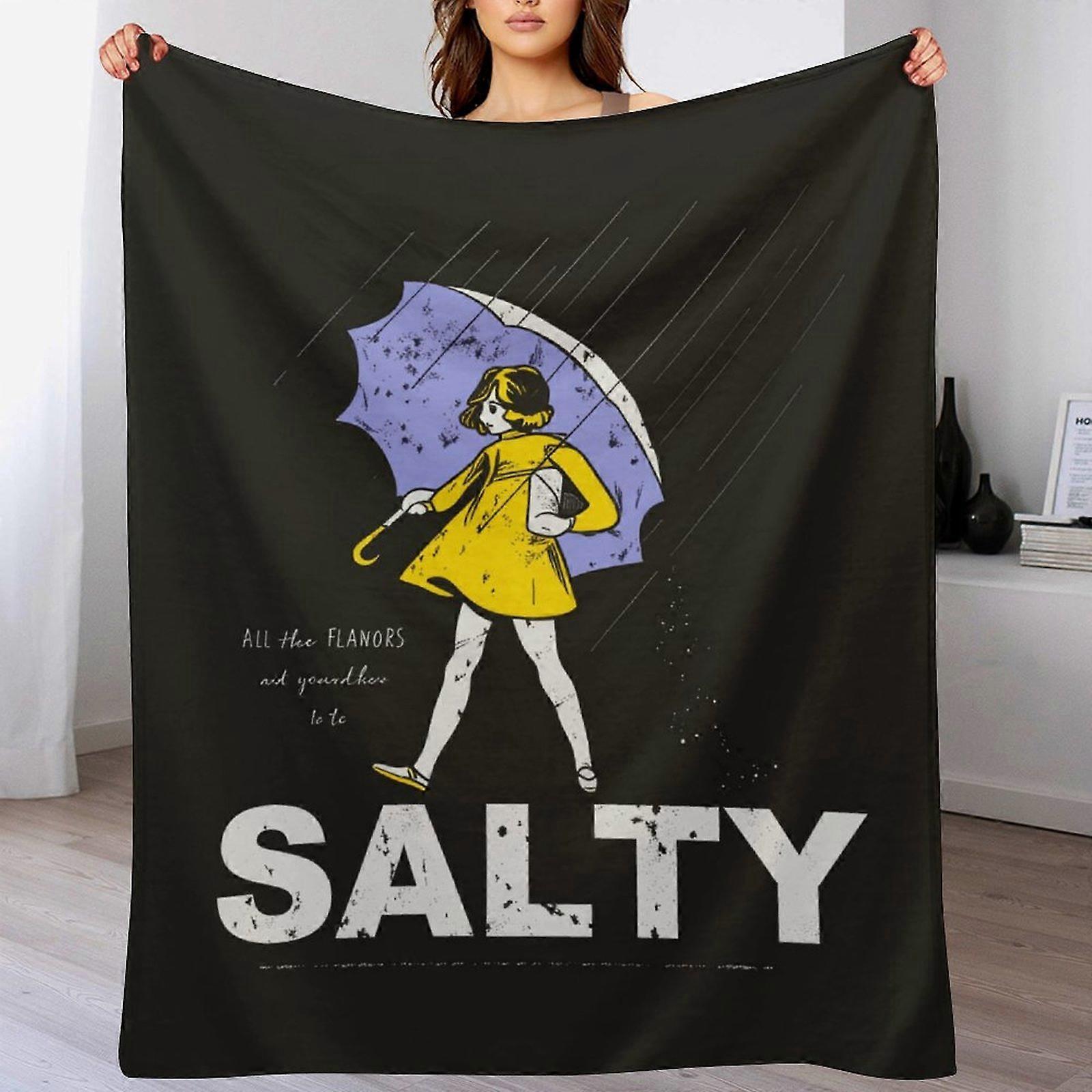 “Salty” Girl with Umbrella Graphic Print Fleece Blanket, Vintage Cartoon Style Illustration Throw, Soft Cozy Blanket for Bedroom Sofa Living Room Deco
