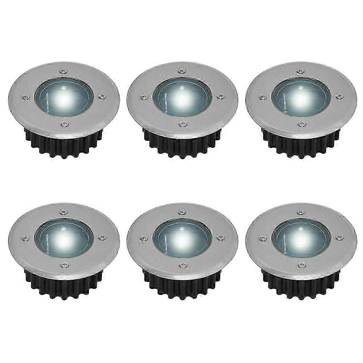 Set of 6 solar Led spotlights flush on the ground - round - diameter: 85 Mm - outside resistant to the legs - stainless steel facade - 6 solar lamps