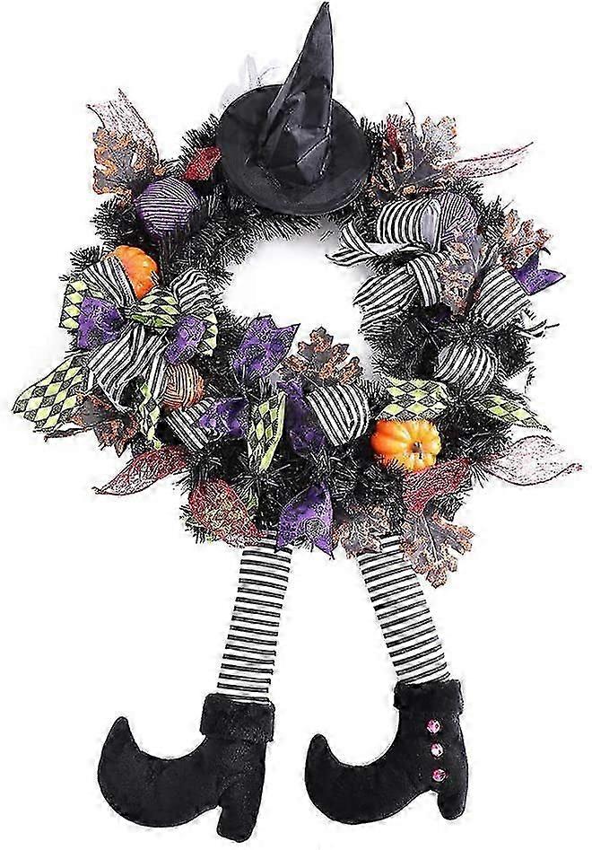 Halloween Witch Wreath Front Door Decoration Hanging Party Ornaments With Pumpkin Legs