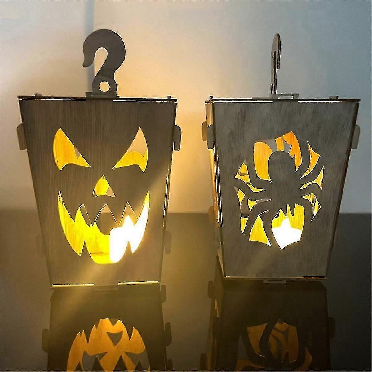Halloween Wooden Lighted Pumpkin for Tabletop, Light Up Pumpkin Ghost Lamp Lantern Shadow Box Halloween Decoration C