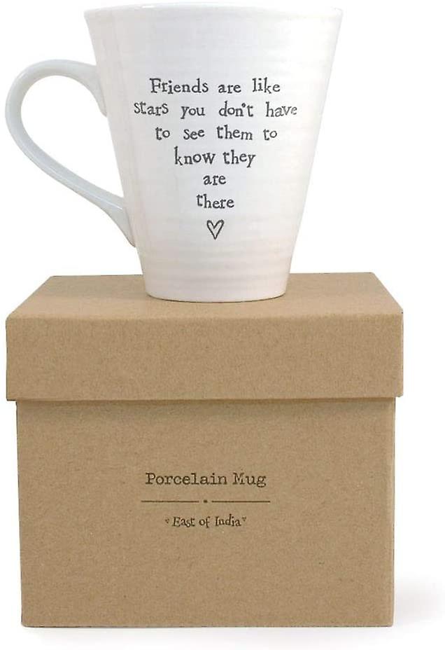 From Our East Of India Collection, This Porcelain Mug Features A Stunning Design Complete With A Ribbed Finish And Elegant Writing That Reads "Friends Are Like Stars, You Don'T Have To See Them To Know They Are There. Finished In A Beautifully Made Gift Box, All The Work Is Done For You With This Marvellous Mug. Whether It Is Your Friends Birthday Or You Need A Christmas Present For Them, This Mug Is Guaranteed To Make Its Mark. Thank Them For All They Have Done For You With The Lovely Wording On The Mug, The Perfect Gift Idea For A Friend. This Mug Is Also Dishwasher And Microwave Safe Which Is An Added Bonus