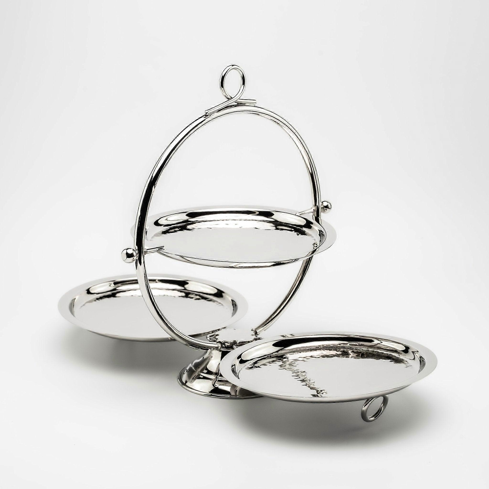 Elegant Chrome-plated Pure Copper Two-tier Serving Stand – Modern Dessert & Pastry Display Tray
