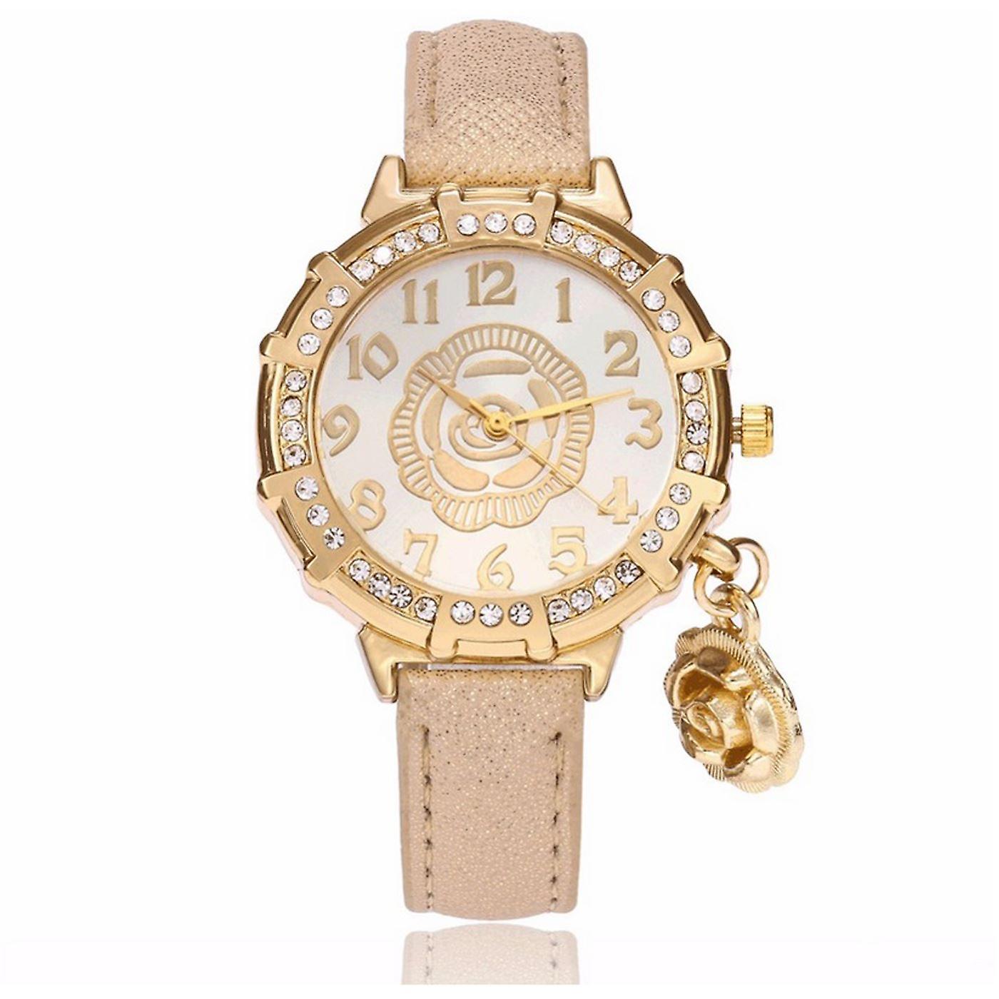 Classy Yellow Gold Flower Watch Luxury Stones Elegant Time GOLD