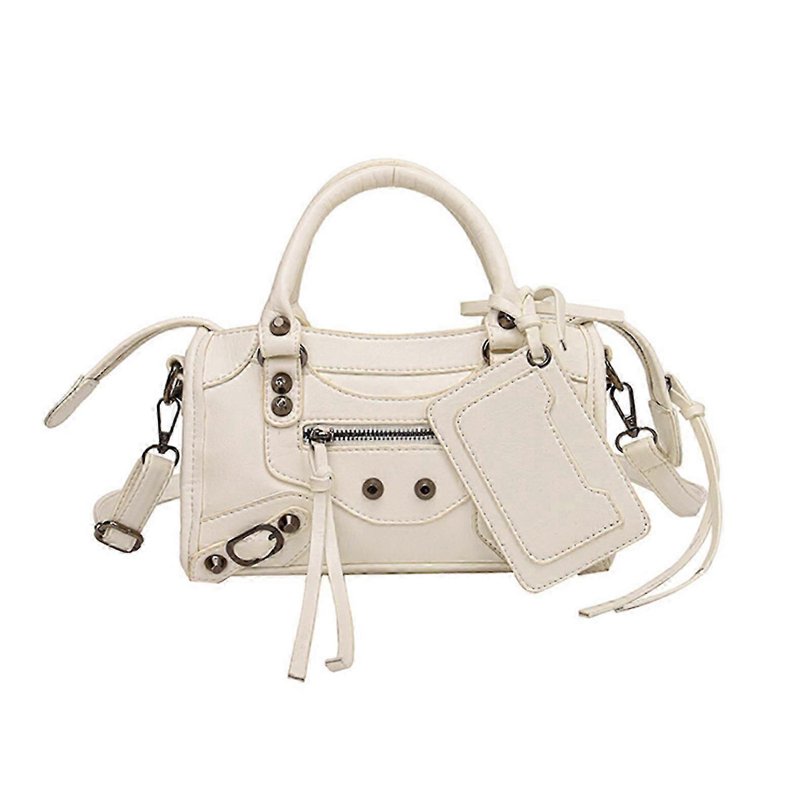 Chic Women's Handbag with Rivet Design and Adjustable Shoulder Strap PU Shoulder Crossbody Bag White