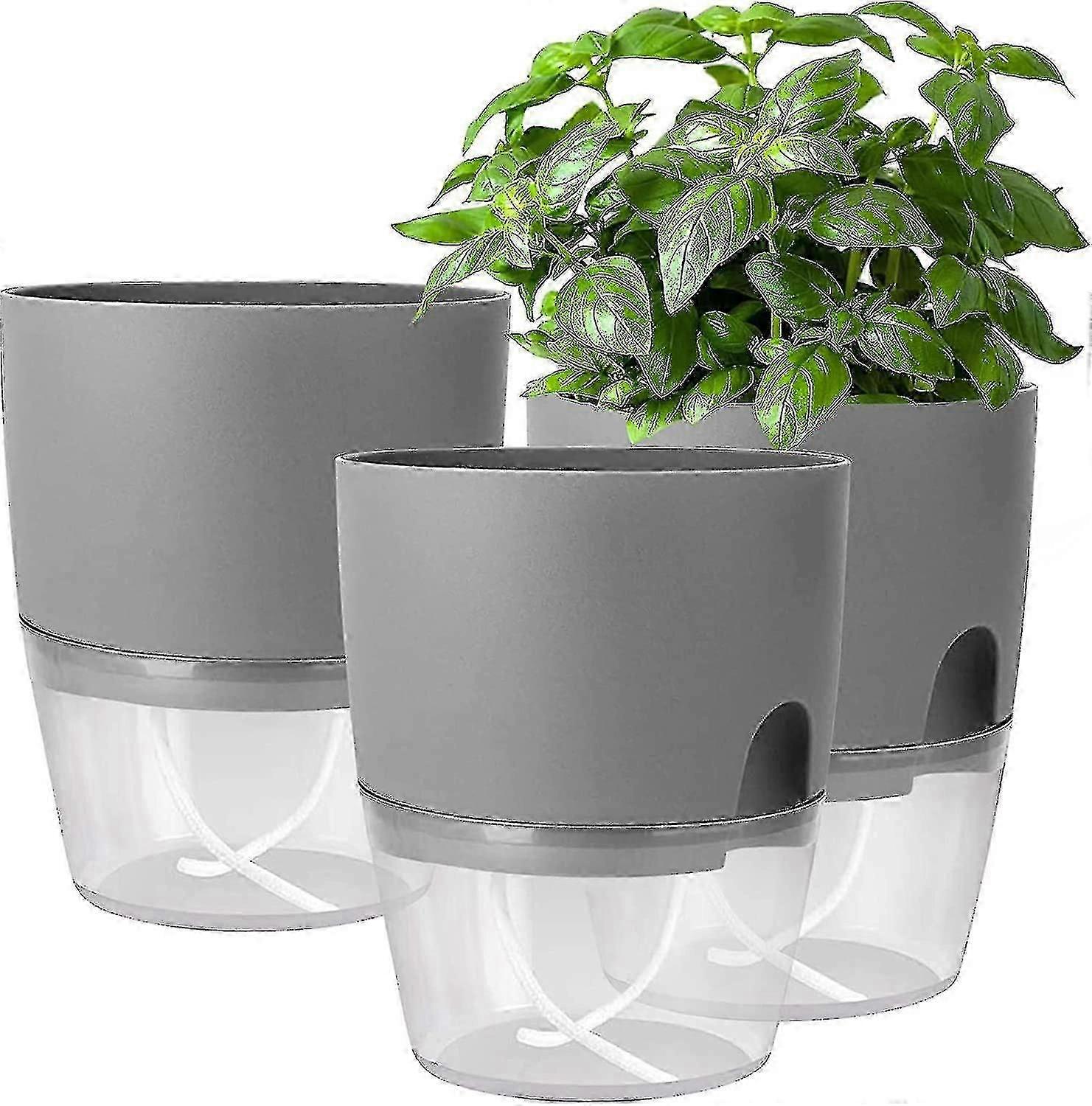 Self-Watering Windowsill Herb Planter Set for Kitchen, 3 Pots, 18.2x11x15.3cm Indoor Herb Garden, Grey