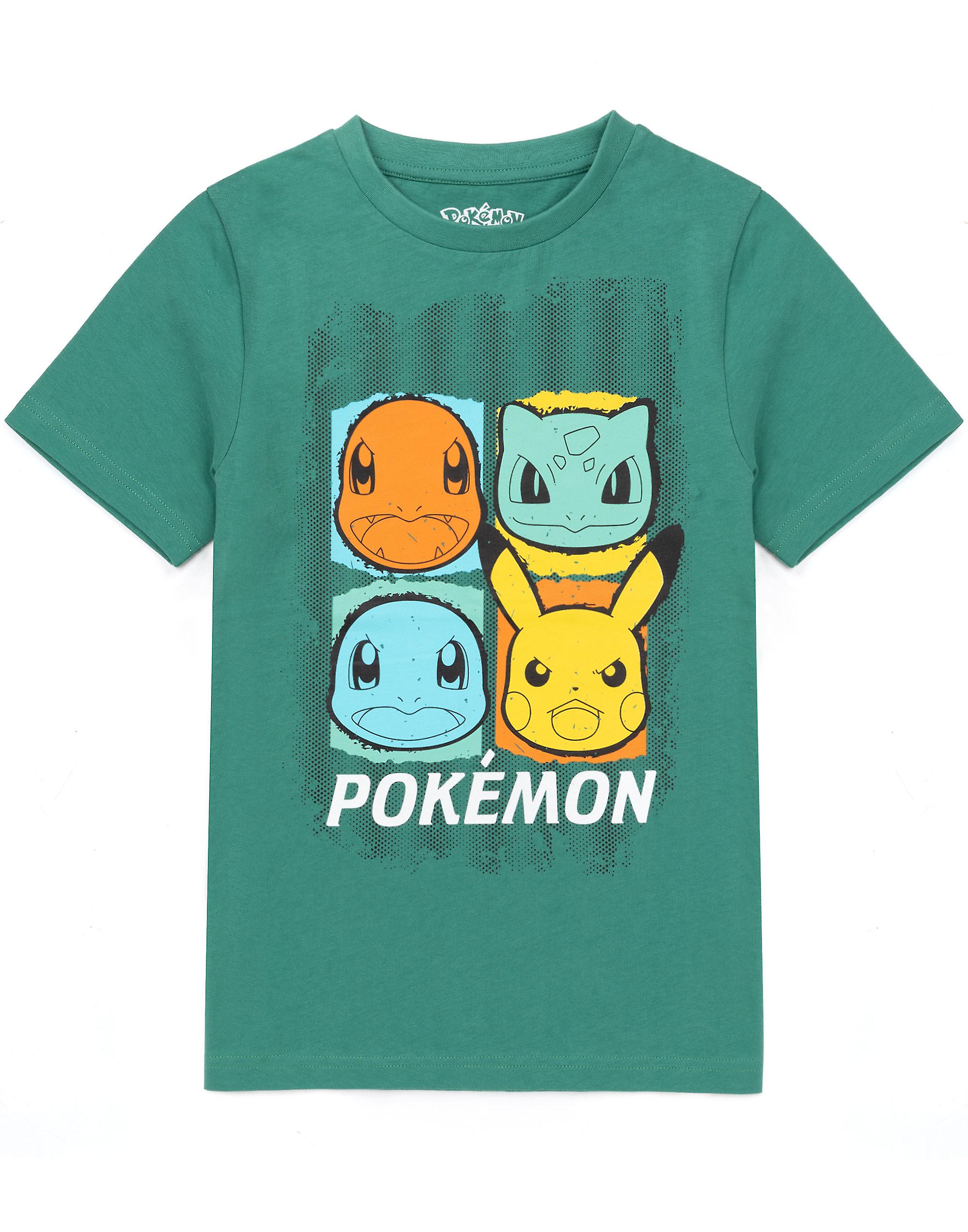 Pokemon Boys Short Sleeved T-Shirt Green Character Placement Print