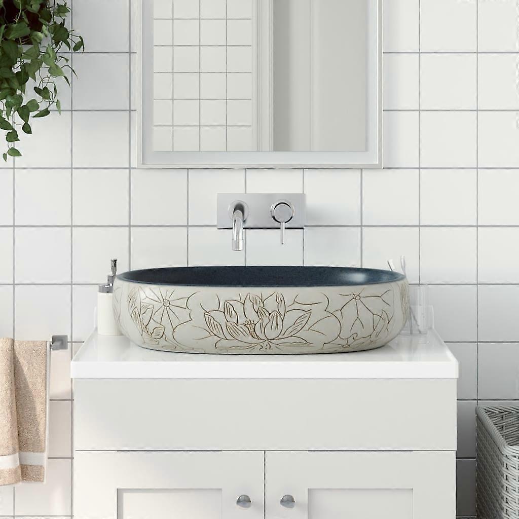 Aufsatzwaschbecken Sandfarben Blau Oval 59x40x14 cm Keramik