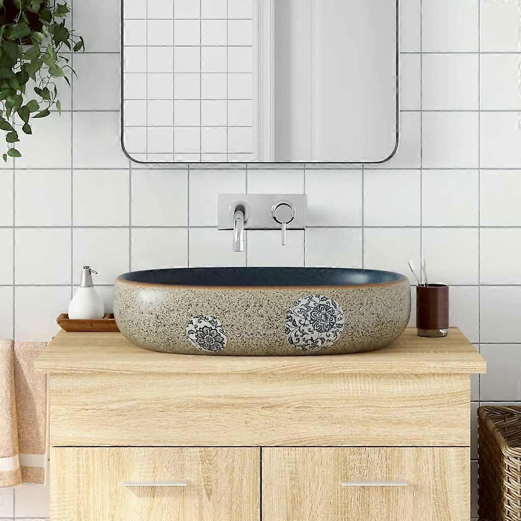 Aufsatzwaschbecken Sandfarben Blau Oval 59x40x14 cm Keramik