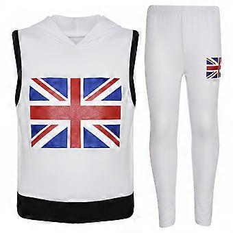 女孩英格兰国旗印花连帽上衣和紧身裤套装
