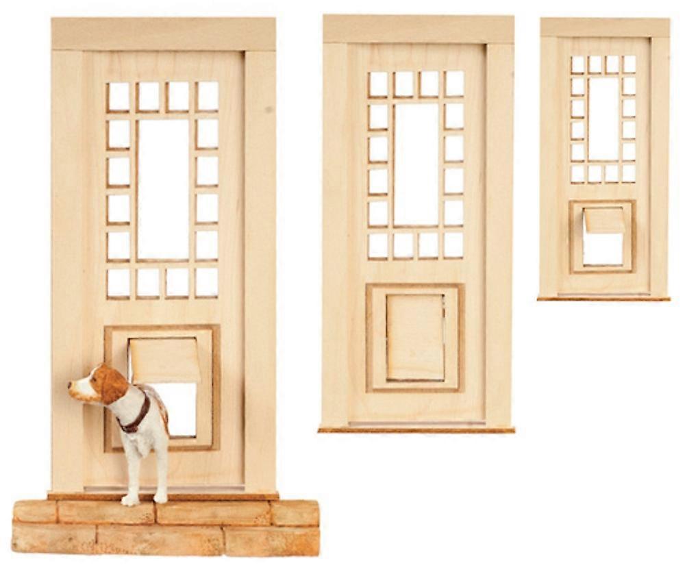Dolls House Back Door With Pet Flap 2 Panel 17 Window Panes Wooden 1:12 Scale