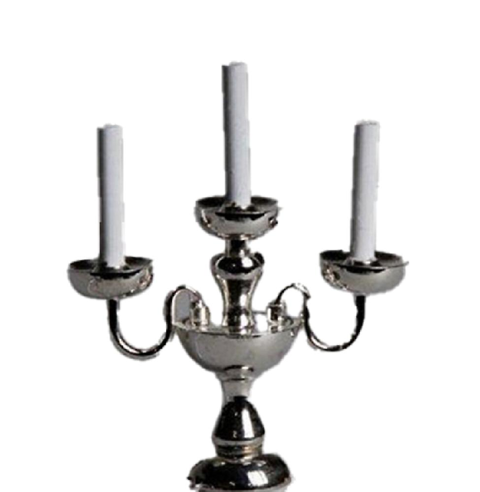 Dolls House 3 Arm Candlestick Silver Candelabra Table Lamp 12v Electric Lighting