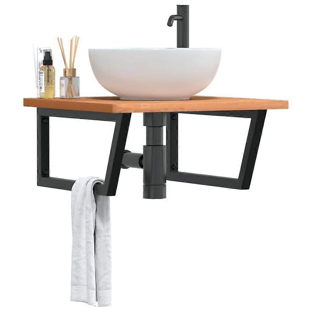 Das Regal lässt sich sicher an der Wand befestigen und bietet eine elegante und platzsparende Lösung für dein Badezimmer. Robust und langlebig: Dieses Waschbeckenregal besteht aus einem Stahlgestell und einer Oberplatte aus massivem Buchenholz, was es robust, stabil und langlebig macht. Platzsparend: Das Schweberegal bietet reichlich Platz für Cremes und Kleinigkeiten. Dank der Trapezform der Halterungen lassen sich auch Handtücher oder andere Sachen platzsparend darauf aufhängen. Einfache Verwendung: Die Holzplatte ist nicht vorgebohrt, sodass dein Waschbecken je nach Bedarf links, rechts oder in der Mitte angebracht werden kann. Dank der vorgebohrten Löcher in der Halterung lässt sich die Ablage am Waschtisch oder an der Wand mühelos befestigen. Vielseitig einsetzbar: Dank ihres modernen Designs schafft die Ablage zusätzlichen Stauraum und fügt sich harmonisch in die unterschiedlichsten Einrichtungen ein. Gut zu wissen:Die Schrauben sind nicht im Lieferumfang enthalten. Du kannst die Schrauben anhand von den folgenden Informationen separat erwerben. Wandbefestigung: 2 x M8-Dehnschraube pro Halterung Holzplatte: 2 x M5x18-Schraube (T=2) oder 2 x M5x20-Schraube (T=2,5/4 cm) pro Halterung