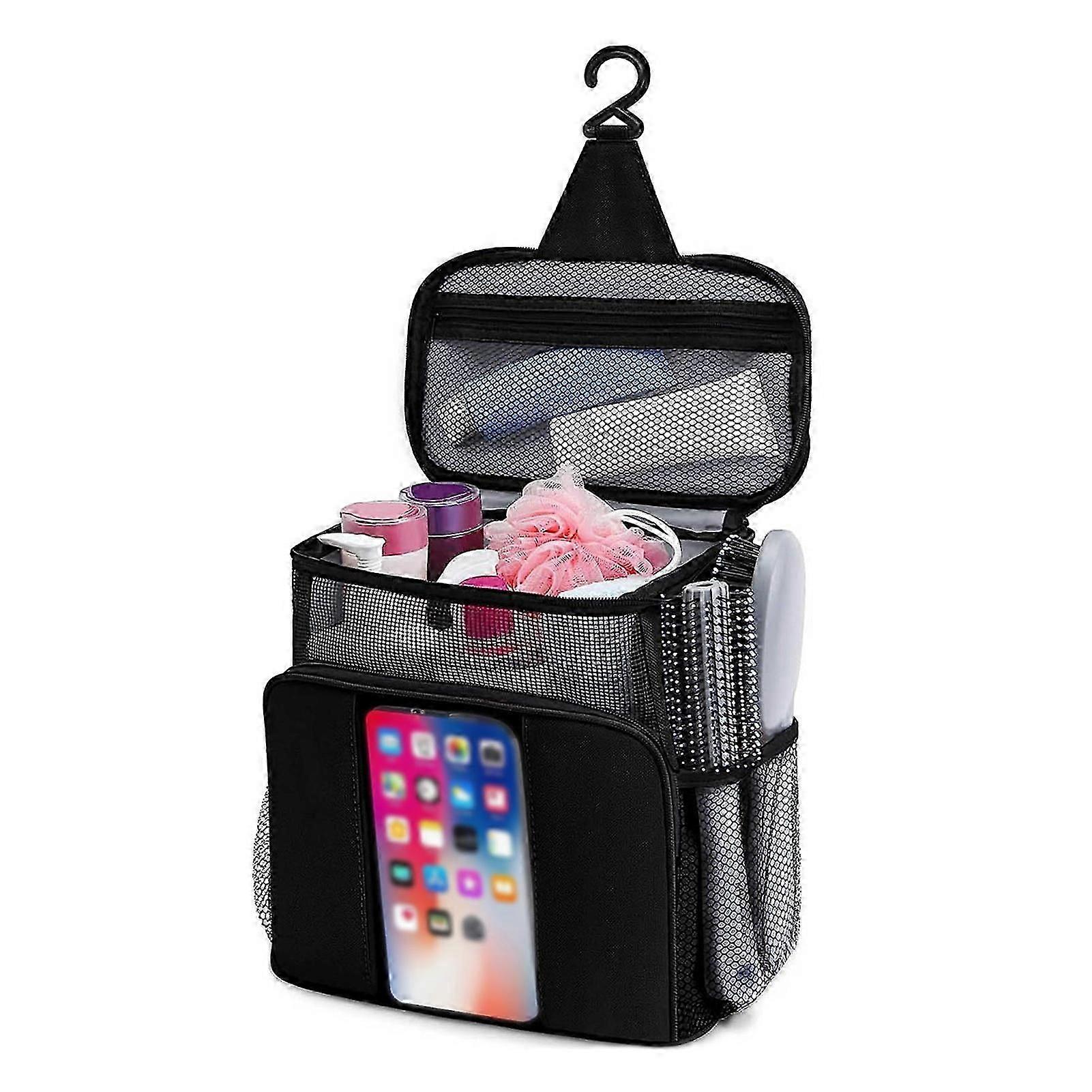 Features:Versatile Hanging Shower Bag: This multifunctional bag is perfect for organizing your toiletries, cosmetics, and sanitary items for travel, camping, or college dorm life.Mesh Design for Quick Drying: The breathable mesh material of this shower caddy allows for quick drying, making it ideal for gym showers or camping trips.Spacious and Organized: With multiple compartments and pockets, this travel shower organizer keeps your essentials neatly stored and easily accessible.Compact and Portable: Take this lightweight shower bag with you wherever you go, whether it's a weekend getaway or a trip to the gym.Ideal for All Your Needs: Whether you're heading to the gym, camping, or college, this versatile shower bag has you covered for all your toiletry and cosmetic storage needs.Specification:Material: Oxford ClothSize: 25.5*14.2*25cmInclude: 1*Hanging Mesh Shower Bag with Hook
