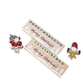 Christmas Countdown Calendar Wooden Xmas Holiday Wood -Calendar Countdown Decor Ornament Santa- Cal