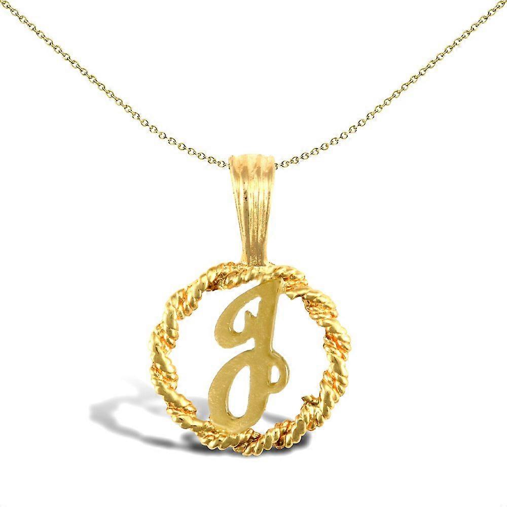 Jewelco London Solid 9ct Yellow Gold Rope Identity Initial Charm Pendant Letter J