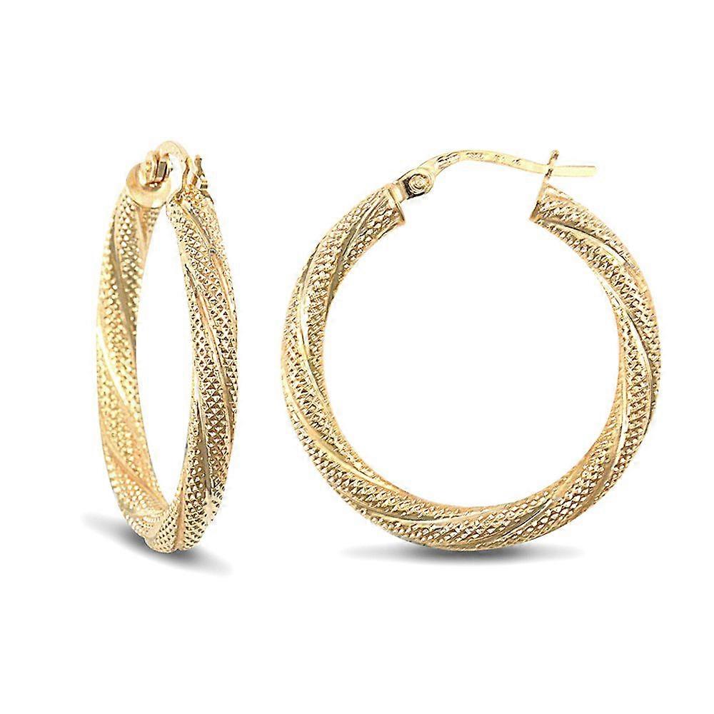 Jewelco London Ladies 9ct Yellow Gold Snake Skin Twisted 3mm Hoop Earrings 25mm