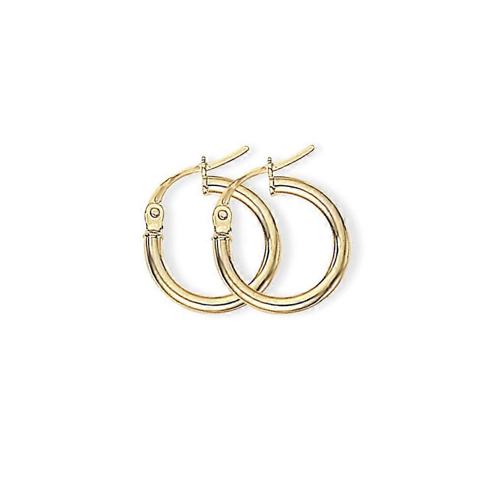 Jewelco London Ladies 9ct Yellow Gold 2mm Gauge Plain Polish Hoop Earrings 14mm