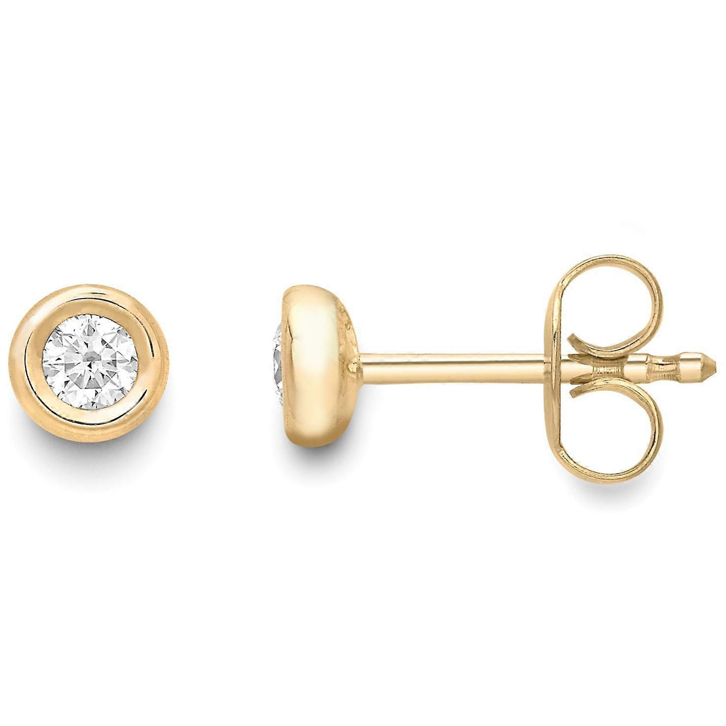 Jewelco London 18ct Gold Diamond Rubover Solitaire Stud Earrings 5mm 0.16ct