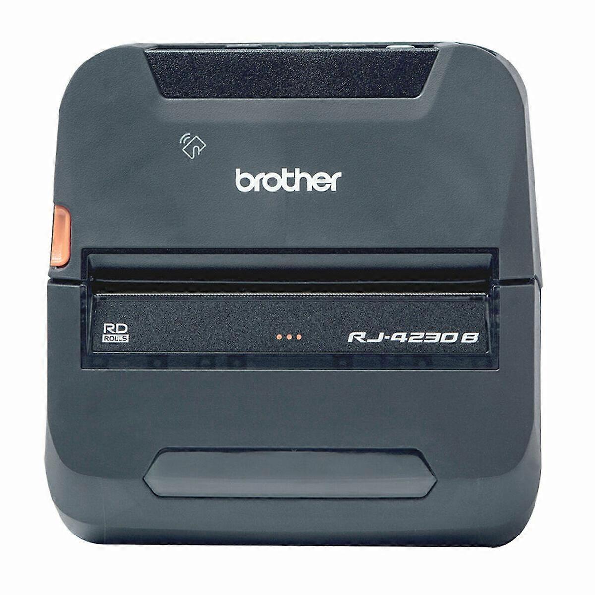 buy Label Printer Brother RJ-4230B . The Brother RJ-4230B label printer is a portable wireless device designed for professionals needing a fast, reliable, and rugged solution in both indoor and outdoor environments. This printer uses direct thermal printing technology, ensuring a high print speed of up to 127 mm per second (5 ips), ideal for printing barcode labels, delivery notes, invoices, and other common applications in warehouses, logistics, public safety, and sales services. It features a durable design that withstands drops from 2.1 meters and has an IP54 protection rating without a case, confirming its resistance to dust and splashes. Its capacity to handle label rolls with a maximum diameter of 5.8 cm and compatible paper widths between 45 and 113 mm, with a maximum print width of 104 mm, provides versatility to suit various labeling needs. Regarding connectivity, this professional printer offers both wireless and wired options, highlighting its Bluetooth technology with GATT, HCRP, OPP, and SPP profiles and a mini-USB type B port, facilitating integration with mobile devices and computer systems. Its 64 MB flash memory and 256 MB RAM ensure smooth and stable operation during extended tasks. The built-in LCD screen offers a simple and functional interface to control printing operations and settings, while its rechargeable battery allows the mobility required for fieldwork, guaranteeing optimal performance when used with battery power. Manufactured in China and presented in black, the Brother RJ-4230B includes a wide range of optional accessories such as charging bases and vehicle mounts, adapting to professional environments with specific mounting and charging needs. This printer is a robust and efficient tool designed to optimize labeling and documentation processes in demanding sectors, offering a balanced combination of speed, durability, and connectivity in a portable format. Product with plug: YesType of plug: Plug EUIP rating: IP54Connectivity: NFCBluetoothBluetooth 4.2Type: Label PrinterWirelessColour: BlackCharacteristics: RechargeableBuilt-in displayLCD ScreenConnections: USB 2.0USBMaximal image resolution: 203 x 203 dpiPower supply: Battery,DCTechnology: LCDThermalSpeed: 10 ppmColour printing: NoBatteries included: YesFrequency: 50 - 60 HzEthernet: NoNot included: WiFiWeight: 1,24 KgWorking range for humidity: 10 % - 90 %Battery type: Litio IonWidth: 12,1 cm