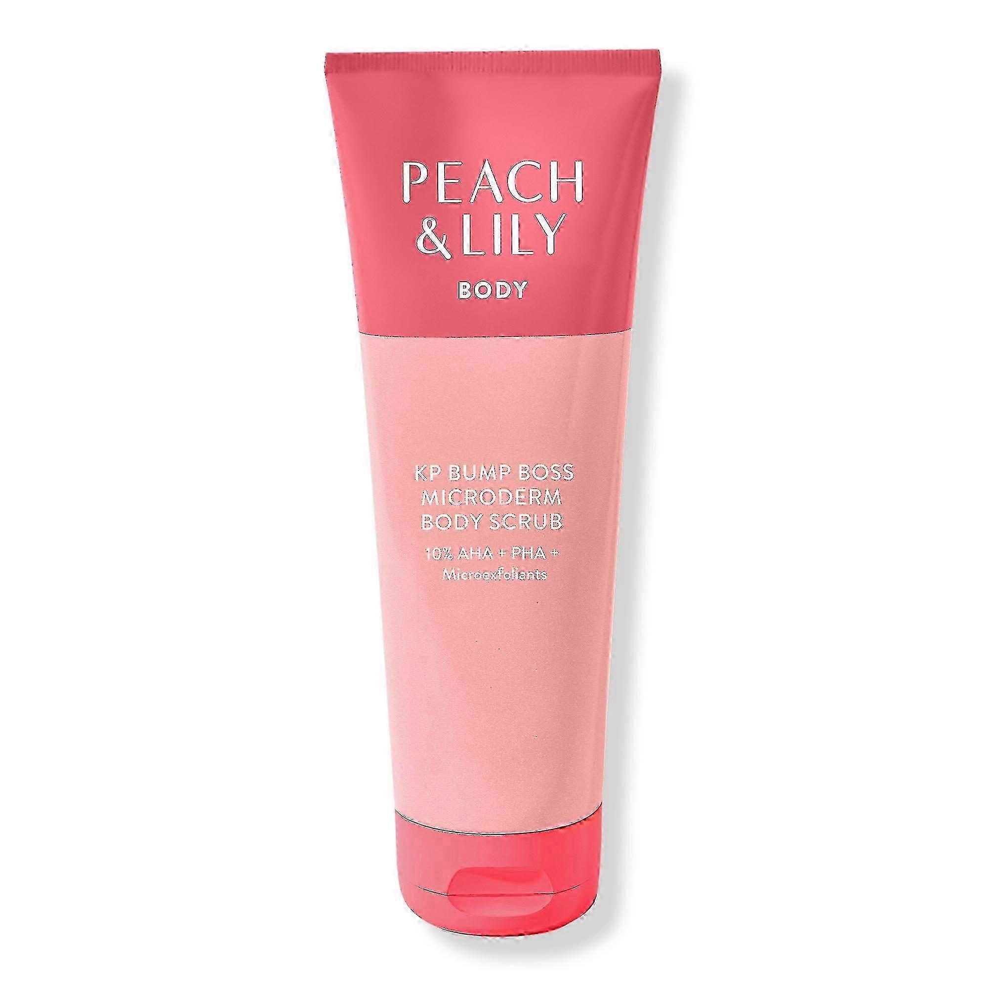 Pesky body bumps, chest, back, keratosis pilaris (KP) aka "strawberry skin?" Say "bye, body bumps" with Peach & Lily's KP Bump Boss Microderm Body Scrub. Benefits Powerful formula instantly resurfaces and exfoliatesReveal skin that looks and feels dramatically smoother, softer, and silkierInspired by the iconic Korean bath scrub, this spa-grade formula combines the benefits of a chemical peel, microdermabrasion, and skin-softening treatment in oneGentle, vegan formula is fragrance-free, scent-free, and non-comedogenic10% AHA (7% glycolic acid + 3% lactic acid), PHA and fruit extracts work instantly to help loosen dead skin cells and unclog pores and bumpsFinely milled mineral crystals slough, buff and polish for baby-soft skinSmooth, silky-soft and radiant skin - just like stepping out of a Korean spaIncludes superstar ingredients: AHA, PHA, Hyaluronic Acid, Cica and BarleyBarley, cica, and tea extracts visibly calm signs of redness and inflammationSkin is soaked with lightweight refreshing hydrators squalane, hyaluronic acid and cucumberPeach & Lily created the Glass Skin movement to help people achieve their healthiest skinAlicia Yoon, celebrity esthetician and founder of Peach & Lily, struggled with persistent severe eczema. She learned how to transform the look and feel of her own problem-skin with gentle, safe and effective ingredients. All Peach & Lily formulas are crafted with this philosophy in mind100% Worry Free: Peach & Lily formulas are clean, non-toxic, alcohol-free, fragrance-free, vegan, gluten-free and cruelty-free. Leaping Bunny certified.Excludes 1,550+ ingredients: no sulfates, fragrances, formaldehyde, dyes or colorants, parabens, mineral oils, silicones, and more - ever. Key Ingredients Peach & Lily uses natural extracts and clinically proven ingredients to give visible results10% AHA (7% glycolic acid + 3% lactic acid) sloughs off dead skin cells, resurfaces skin, combats bumps, clarifies clogged pores and visibly smooths texturePolyhydroxy Acid (PHA): (gentle dosage of less than 1% is included) a gentle acid that helps skin look and feel visibly softer and smootherMineral crystals: (Hydrated Silica on ingredient list) gently polishes skin for a silky-soft, retexturized finishFruit extracts: (Apple, Asian Plum, Papaya, Grape) a very gentle amount is included to naturally boost exfoliation while pampering skin with vitaminsHyaluronic Acid Complex: important for skin to be hydrated to effectively combat KP, so in addition to exfoliants, they include hydrating hyaluronic acidCucumber: inspired by the iconic Korean bath scrub experience where cucumbers are almost always used to refresh, revive, and calm skin, they include cucumberMugwort: a plant/weed that's one of the most beloved Korean ingredients used in traditional Korean remedies, and included in Korean food Active Ingredients: Apply to wet skin and massage gently onto target areas or all over body. Rinse thoroughly. Follow with a moisturizer. Not intended for facial use. Use up to 2-3 times weekly. Precautions: Avoid contact with eyes. Discontinue use if irritation occurs. This product contains alpha-hydroxy acids (AHAs) and may increase your skin's sensitivity to the sun. Use sunscreen and limit exposure to the sun while using this product and for a week after ceasing use.