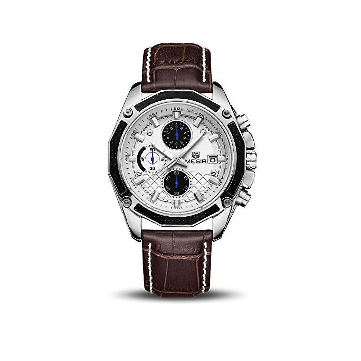 Megir Mens Homage Quartz Analogue Watch Silver Brown Date Smart Watches Leather