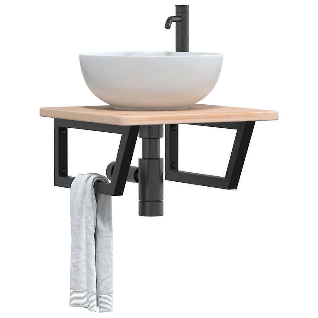 Waschtischplatte mit Halterung Stahl und Massivholz Eiche