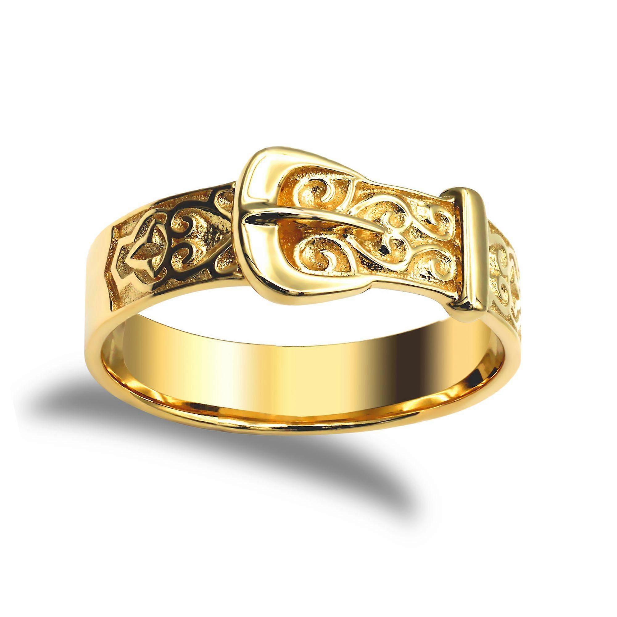 Jewelco London Men's Solid 9ct Yellow Gold Single Buckle Ring