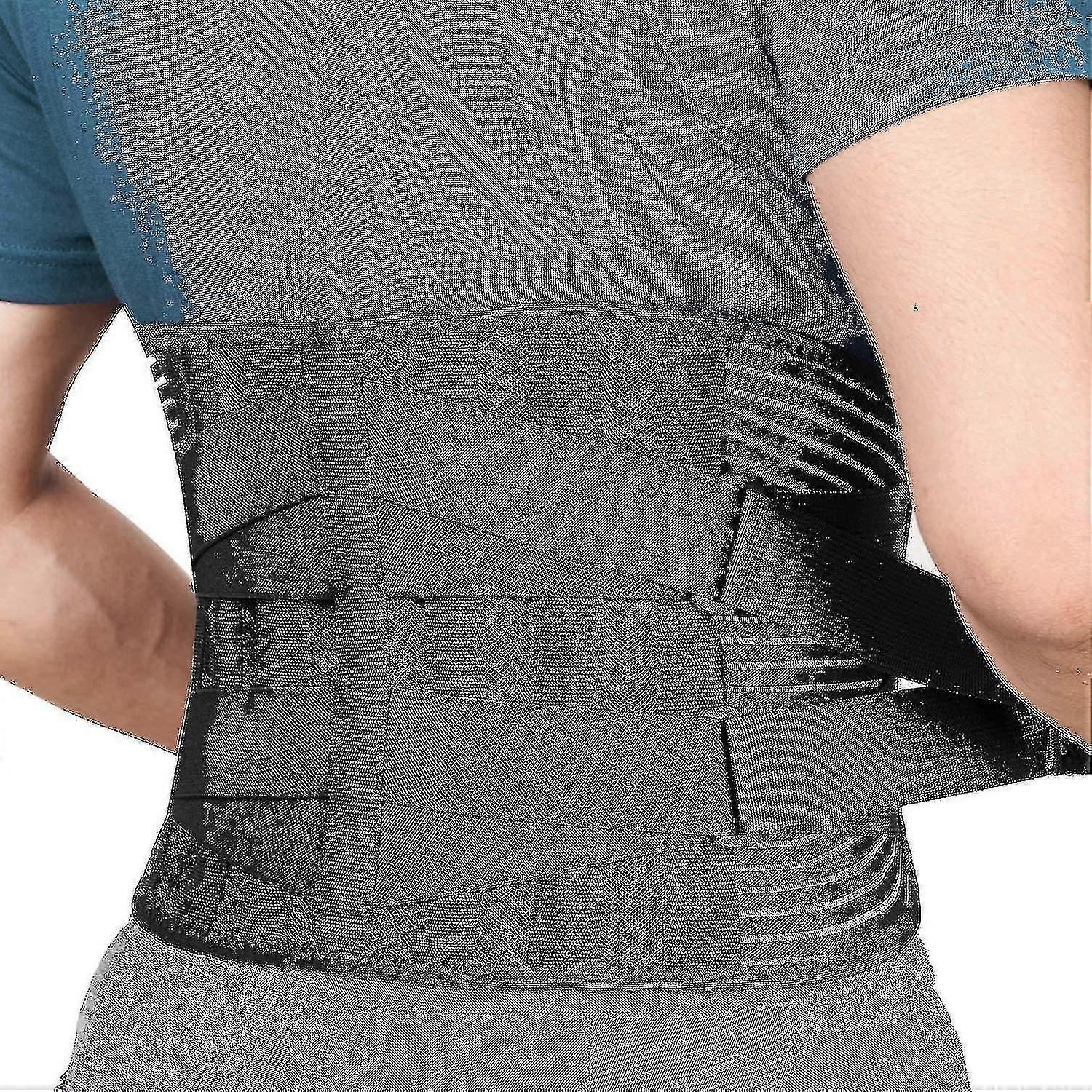 Relieve LOWER BACK PAIN Back brace contains 4 Memory-aluminum stays that are quadruple harder than the commonly used PP stripsand 2 steel springs placed along the waist side, offer 360 stronger vertical support to lower back,prevent excessive rolling of your muscles and decrease the pressure on your discs .^Well wear under clothesThe back support made of 4-way stretch elastic material3D knitting technology by different compression levels, for superior fit,breath and comfort. The inner layer is made of velvet fabric, giving an ultimate baby-skin-like silky touch,perfect for dressing internally.^PREVENT BACK INJURIESBack support with 2 elastic straps are designed to add extra compression around lower back to prevent back injuries from weight lifting, long time standing or sitting, doing housework, working, etc. Relief waist muscles ache, disc herniation, sciatica, scoliosis etc when wearing the back belt.^CONSIDERATE DETAIL DESIGN2 Silicone anti-skid bands are designed on the 2 sides of the waist,prevent the waist support belt from rolling up when sitting, bending or doing other activities.The 1.5*3.7 wide size velcro of 2 elastic straps provides strong adhesion far beyond your expectations, made of PVC material that usually used for babies clothes,will not scratch your skin or damage your clothes.^Durable SATISFIED SERVICEThe waist support adopts double seams, the quality is strictly controlled, and it is very durable.