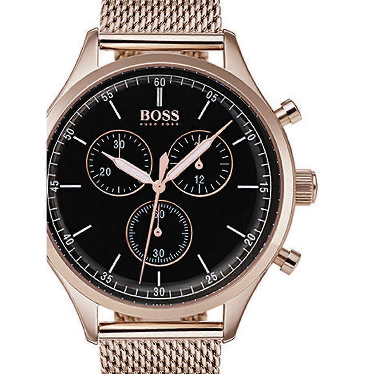 Model: Mens Watch Hugo Boss 1513548, Quartz, 43mm, 5ATM. Brand: Hugo Boss. Package Weight: 0.5 Kg. Movement: Quartz. Case Color: Black. Watchband Color: Gold. Watchband Material: Steel. Case width: 43 mm.