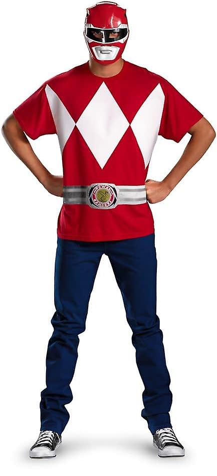 Take a step back to your childhood with this Red Power Ranger costume for men. It is an alternative to the full-fledged ninja warrior, but any man is sure to make a statement wearing it. You can wear any kind of pants you want with this red shirt which has large white diamonds and a simulate belt branded on the front. It also includes a mask. Hit the streets to trick-or-treat with your family or go to local parties with this fun Power Ranger costume idea. Polyester. Includes:• Printed costume shirt• Character mask Imported.