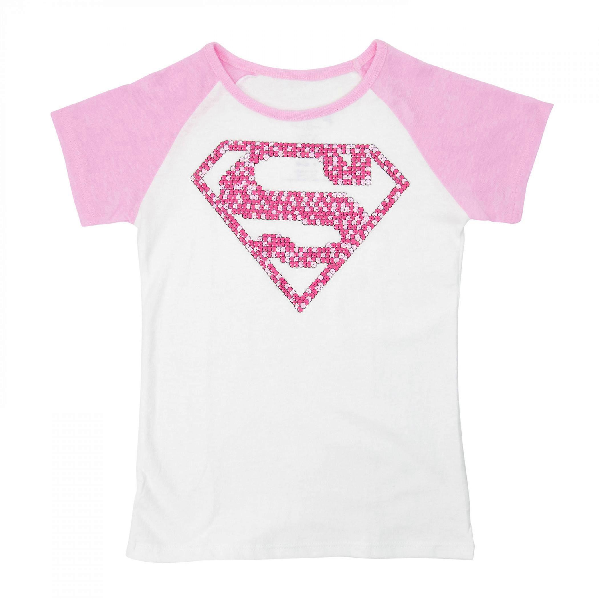 Supergirl Girls Pink Pattern Symbol T-Shirt