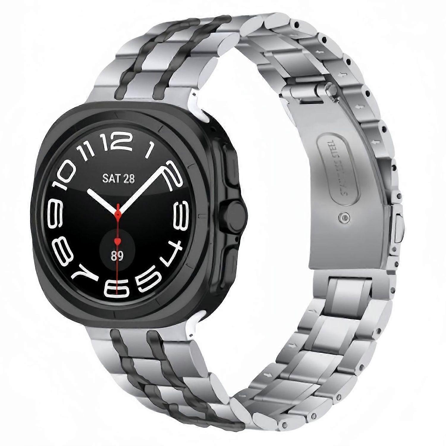 Für Samsung Galaxy Watch 8 / 8 Classic Edelstahl-Armband mit FaltverschlussDieses erstklassige Edelstahl-Armband wurde speziell für die Samsung Galaxy Watch 8 / 8 Classic entwickelt und bietet eine Kombination aus Eleganz und Funktionalität. Perfekt für den täglichen Gebrauch und besondere Anlässe.Material: Hergestellt aus hochwertigem Edelstahl für maximale Haltbarkeit und eine elegante Optik.Design: Fünf-Perlen-Design mit Faltverschluss für sicheren Halt und einfachen Tragekomfort.Einstellbar: Die Länge lässt sich individuell anpassen, um perfekt an Ihr Handgelenk zu passen.Komfort: Glattes, angenehm zu tragendes Material, das Ihre Haut nicht reizt.Einfache Installation: Schnelle und unkomplizierte Anbringung ohne Beschädigung der Uhr.Passend für:Samsung Galaxy Watch 8 Classic 46mmSamsung Galaxy Watch 8 44mmSamsung Galaxy Watch 8 40mmLieferumfang:Edelstahl Armband in Silber