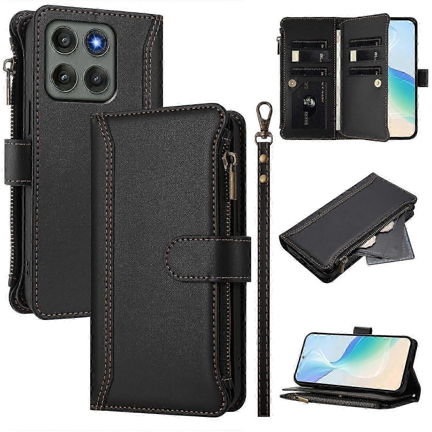 For Motorola Edge 60 Pro 5G Leather Case 9 Card Slots Zipper Wallet Stand Phone Cover with Wrist Str