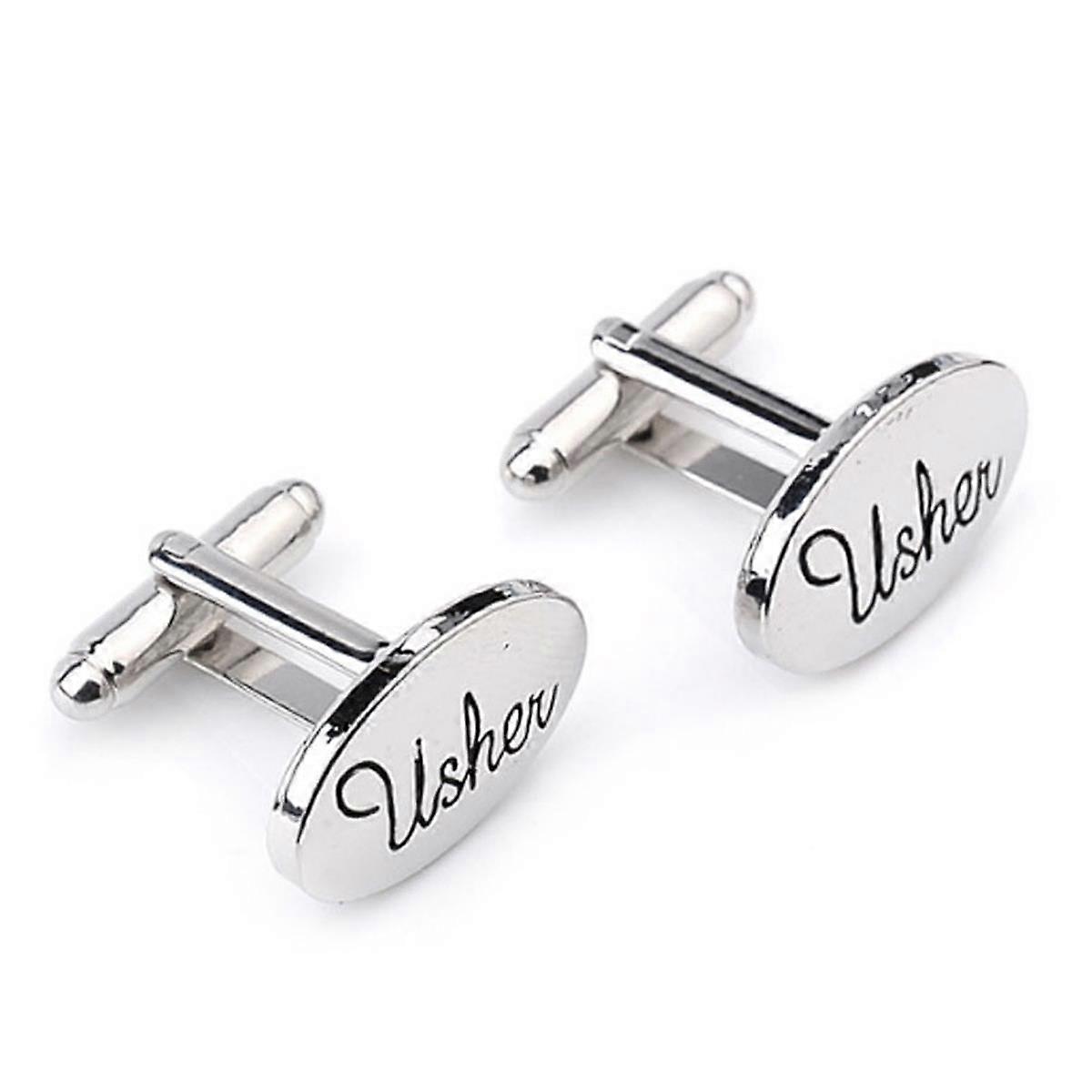 Silver Usher Cuffflinks Wedding Bride Groom Party Friend Oval Cufflink Tuxedo Suit Shirt UK