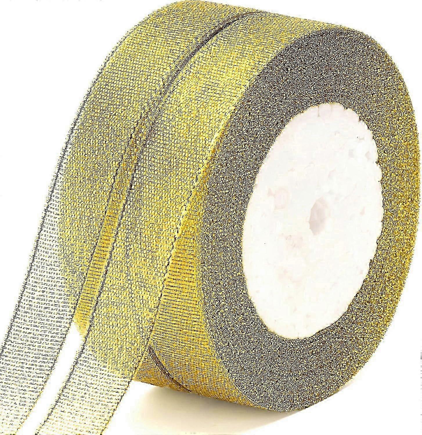 Sparkly Gold Organza Gift Wrap Ribbon, 20mm Christmas Decorative Ribbon, 22M Glitter Metallic Ribbon