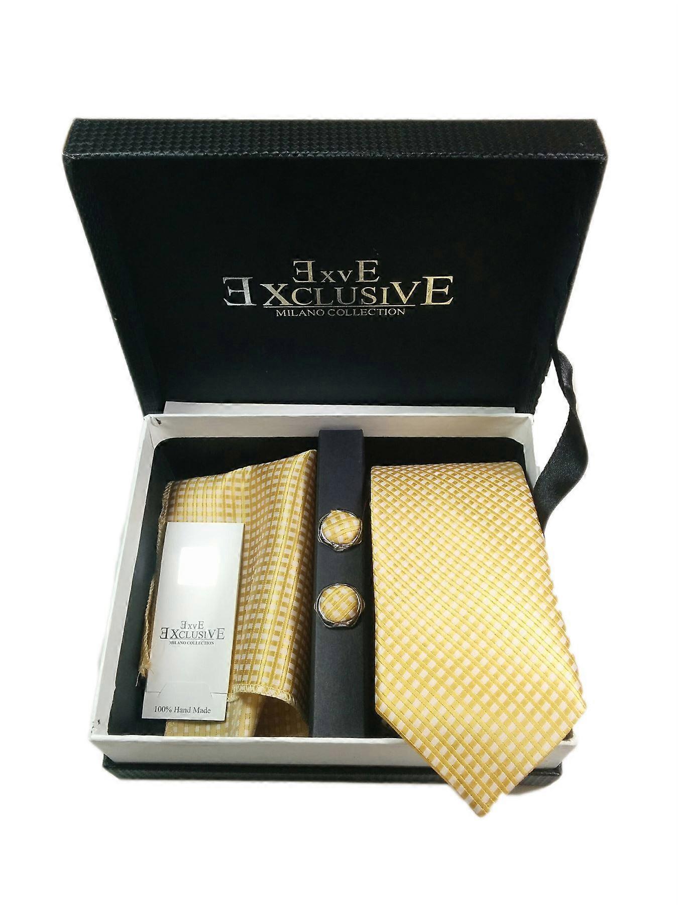 Tie, Cufflink & Hankerchief Set Exlusive Milan Collection 100% Hand Made Yellow & White Diamonds