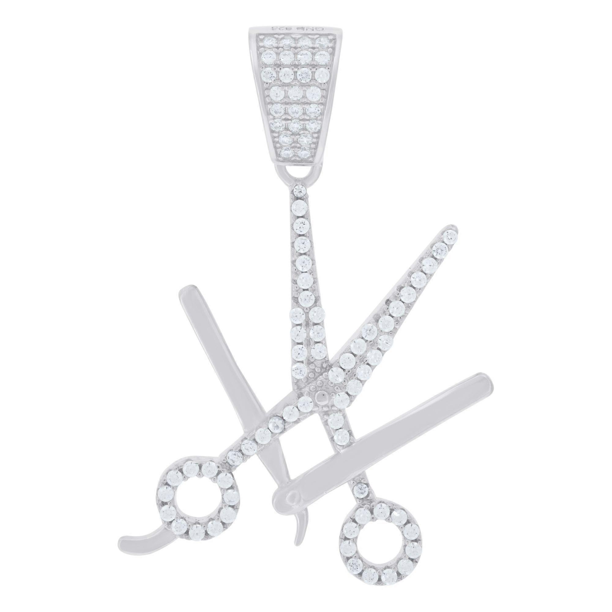 Premium Bling - 925 Sterling Silber Kamm Schere Anhänger