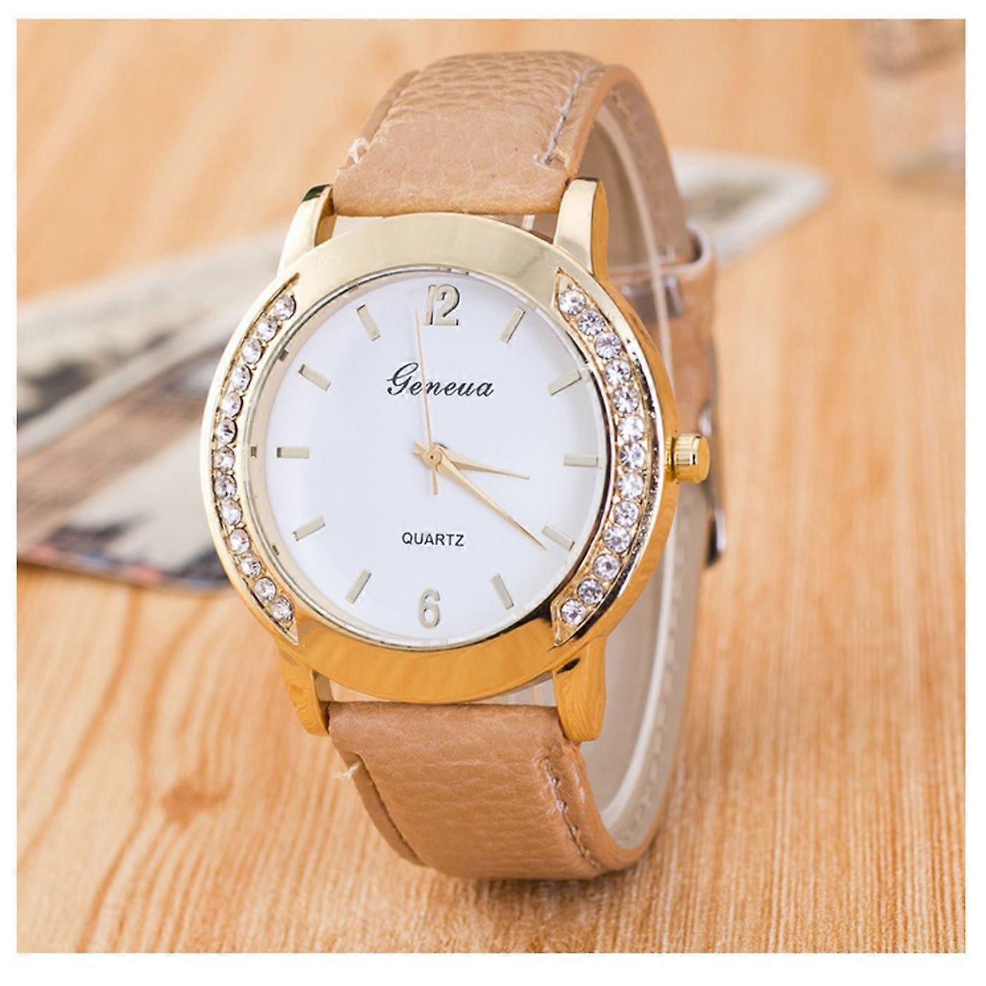 Gold Geneva Beige Watch Ladies Girls Fashion Watches