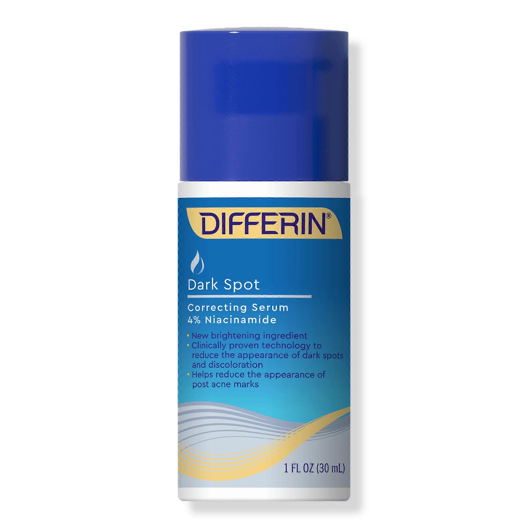 Differin Dark Spot Correcting Serum helps to lighten post-acne marks, hyperpigmentation, blotches, age spots, and even freckles. When used every day it can improve overall skin tone and clarity. Benefits Helps reduce the appearance of post acne marksGel-like formula goes on smoothly and can be layered under makeupGentle enough for daily use, morning or nightImproves luminosityParaben-freeNon-comedogenicDermatologist-tested Key Ingredients Niacinamide 4%Vitamin CBiotinHippophae Rhamnoides Oil Inactive Ingredients: 1 Cool Light Blonde: Synthetic Fluorphlogopite, Stearic Acid, Hydrogenated Castor Oil, Synthetic Japan Wax, Ethylhexyl Palmitate, Cera Alba (Beeswax), Sorbitan Sesquiisostearate, Aluminum Hydroxide, Tocopherol. May Contain: CI 19140 (Yellow 5, Yellow 5 Lake), CI 42090 (Blue 1 Lake), CI 77007 (Ultramarines), CI 77163 (Bismuth Oxychloride), CI 77288 (Chromium Oxide Greens), CI 77289 (Chromium Hydroxide Green), CI 77491, CI 77492, CI 77499 (Iron Oxides), CI 77510 (Ferric Ferrocyanide, Ferric Ammonium Ferrocyanide), CI 77742 (Manganese Violet), CI 77891 (Titanium Dioxide). Product ingredient listings are updated periodically. Before using a Benefit Product, please read the ingredient list on the packaging of your product to be sure that the ingredients are appropriate for your personal use. UPC: 000002551228 Weight: 0.57 lbs