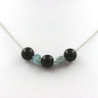 Mattamusta Onyx-helmikaulakoru 8 mm + brasilialainen akvamariini A Bijoux