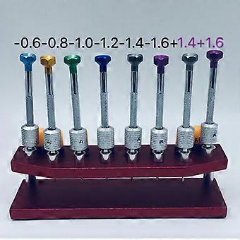 8kpl kellon korjausruuvimeisseli metallijalustalla 0,6 0,8 1,0 1,2 1,4 1,6 mm:n loviristiruuvimeisselisarja kellon korjaustyökaluille