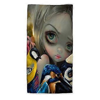 Taidemaalattu linnunlaulu kaunis neito ja linnut mikrokuituinen rantapyyhe Handful Of Prints