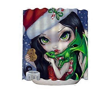 Fantasiataide Kaunis punapää vihreä keiju suihkuverho Handful Of Prints
