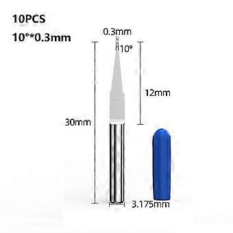 10 kpl kovametalliset piirilevyleikkurit kaiverrusjyrsintyökalut 10 ° / 15 ° / 20 ° / 25 ° / 30 °×0,3 mm värillisille akryylilevyille kovapuu PVC