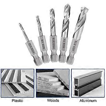5kpl HSS-poranterän metalliosasarja Pikavaihto 1/4 \ " kuusiokoloistukka kierreporausreikäleikkuri metallin poraus.