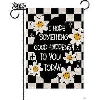Vintage Smile Daisy Summer Garden Flag - 12,5x18 tuuman kaksipuolinen pystysuora sisustus inspiroivilla lainauksilla kausiluonteiseen ulkopihan sisustukseen