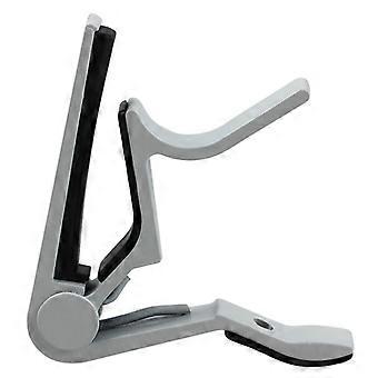 Valkoisen käden Capo-kitaran pidikkeen liipaisin nopealla vaihdolla