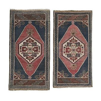 Setti kahdesta matalasta kasasta turkkilaista käsin solmittua ovenjuoksumattoa